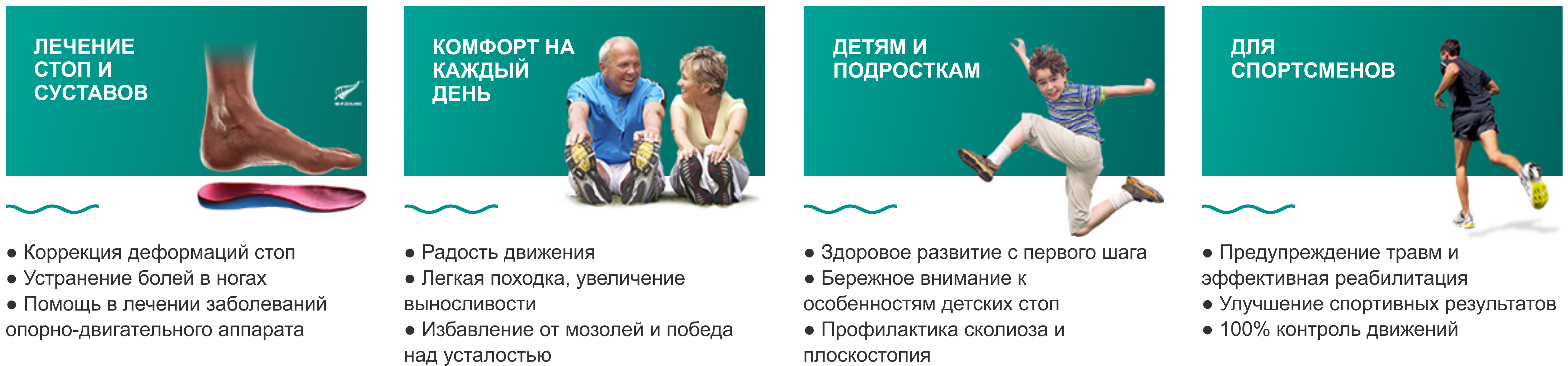 • Ортопедические стельки, сделанные по новозеландской технологии, позволяют: